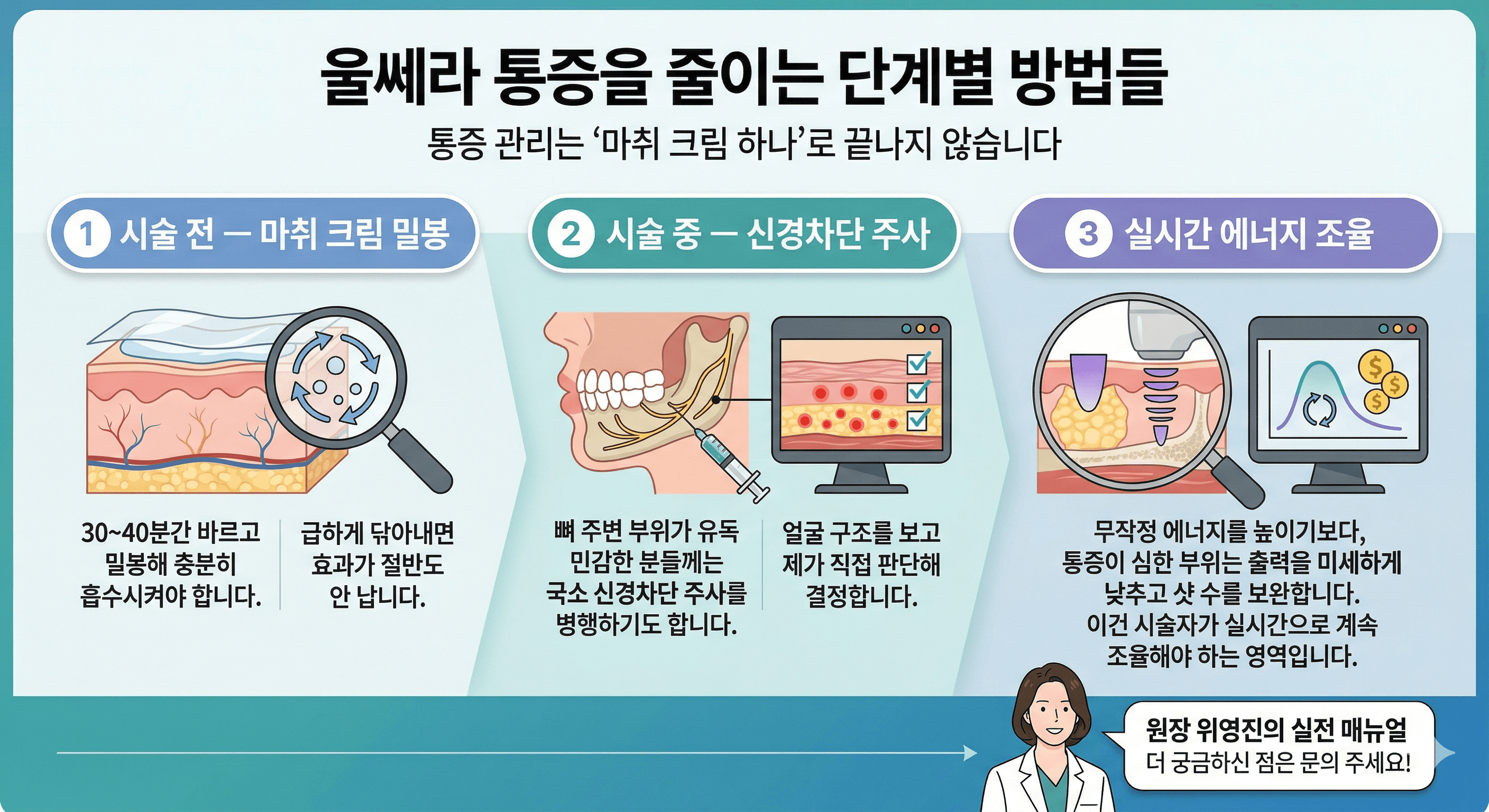 "진짜 엄청 아픈가요?" 원장이 솔직하게 말하는 울쎄라 통증 관리법